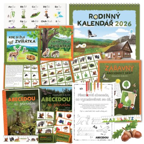 2× tištěná kniha + 2× záložka + pexeso + 2x samolepkový sešit + zábavný abecedový sešit + 2× domino + kalendář 2026 + písankové omalovánky + abecedový plakát + POŠTOVNÉ ZDARMA